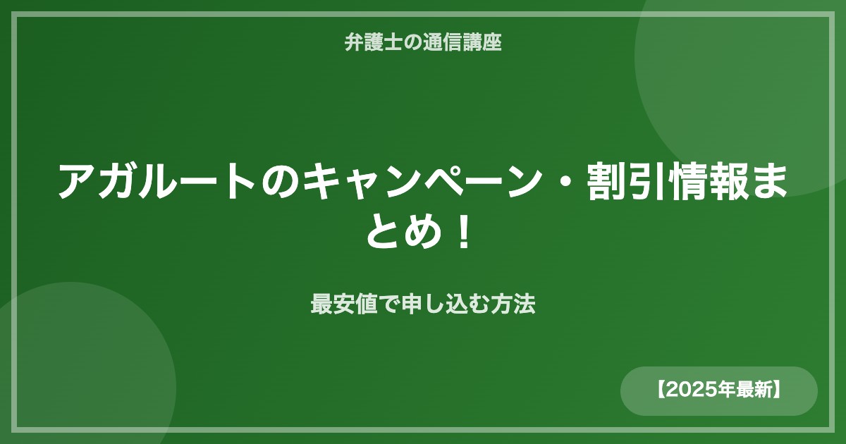 本記事では、アガルートのキャンペーン情報・割引時期・最安値で申し込む方法を徹底解説します。