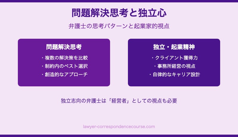 法律問題は「答えが一つ」とは限りません。様々なアプローチを考え、依頼人にとって最善の解決策を探る問題解決力が重要です。制約の中でもベストな選択肢を見つけ出せる思考法は、弁護士のコア・スキルです。 弁護士の仕事内容とスケジュールも確認しておきましょう。