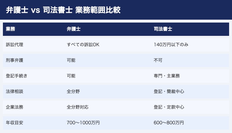弁護士と司法書士の違い|業務範囲・年収・難易度を徹底比較