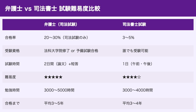 資格の難易度は、弁護士の方が圧倒的に高いとされています。ただし、司法書士試験も合格率3〜5%の難関試験であることは変わりません。