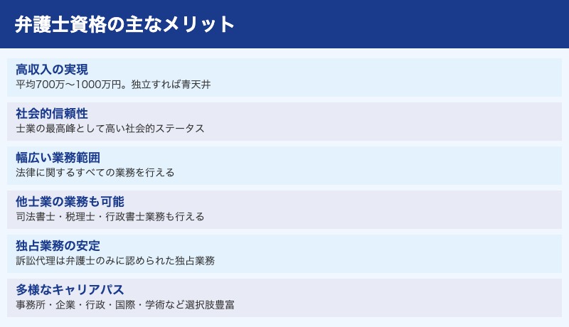 弁護士資格を取るメリット・将来性についてはこちらの記事で詳しく解説しています。
