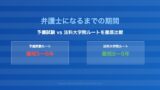 弁護士になるまでの期間については弁護士になるまでの期間の記事を、費用については弁護士資格取得の費用の記事をご覧ください。