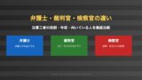 弁護士・裁判官・検察官の職域の違いについてはこちらの記事で詳しく解説しています。