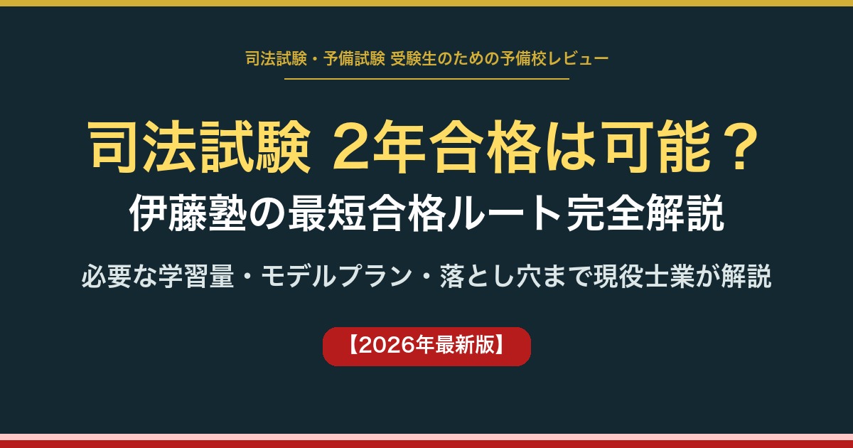 「司法試験の2年合格は可能。ただし、最強の予備校+最大効率の学習計画+強い覚悟がそろった受験生に限る」これが2026年の正解です。