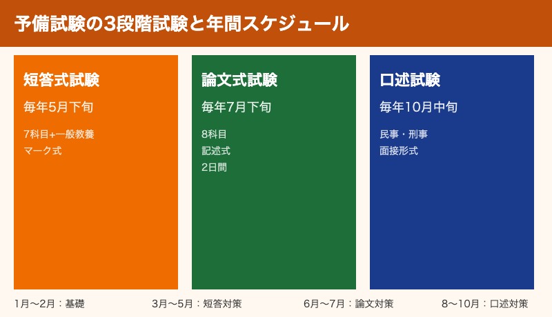 実際の試験日程(短答式:5月、論文式:7月、口述:10月)に合わせた逆算プランです。