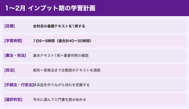 1〜2月:インプット期(全科目の基礎固め)
