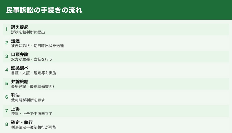 民事訴訟法(全396条)の重要条文を素読し、手続きの流れを体系図として整理することが効果的です。「訴状→送達→口頭弁論→証拠調べ→弁論終結→判決」という流れを図で描けるようにしましょう。